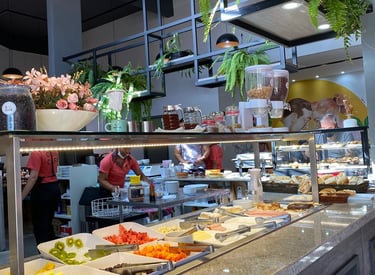 Oferecemos um ambiente acolhedor com produtos frescos e opções variadas no cardápio.